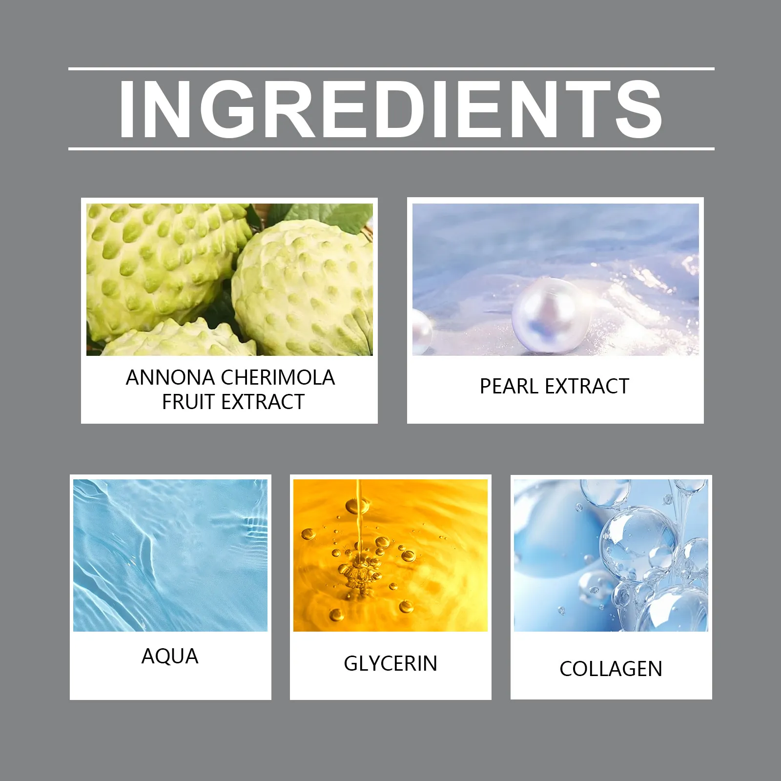 Ingredients: Water, Annona extract, pearl extract, glycerin, collagen