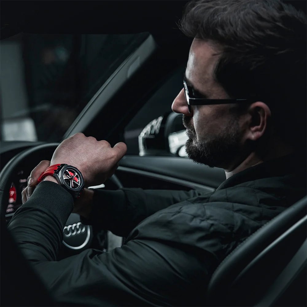 Inspired by motorsport, the watch features eye-catching decorations and a custom 3D modeled dial, adding to its unique design and high-quality construction that captures the power of motorsport.
