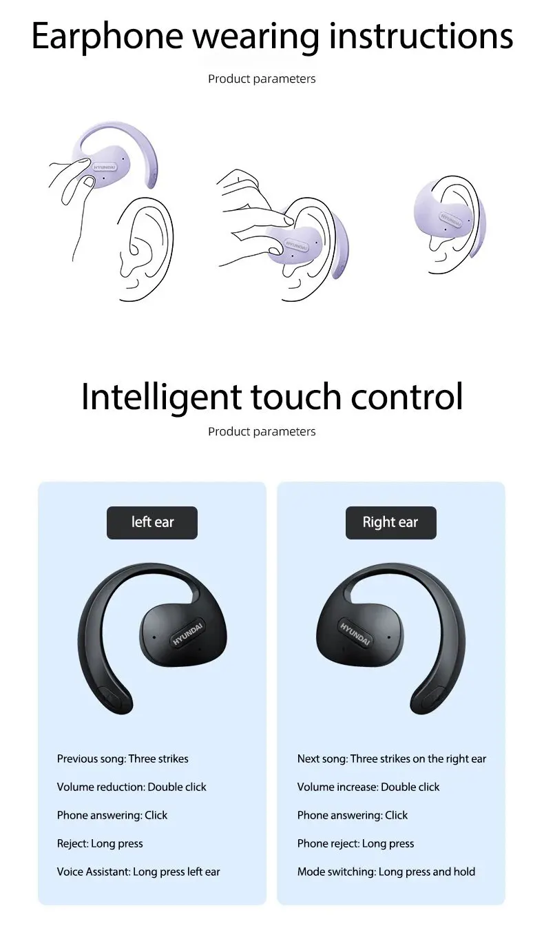 The HYUNDAI X15 Pro wireless Bluetooth 5.3 earphones offer HiFi sound quality and smart HD call functionality. With an extended battery