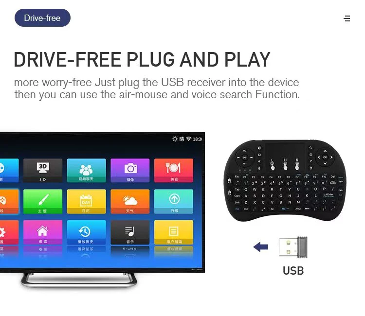 With its aerial mouse functionality, this keyboard serves as a remote control for smart TVs, laptops, and projectors, making it ideal for