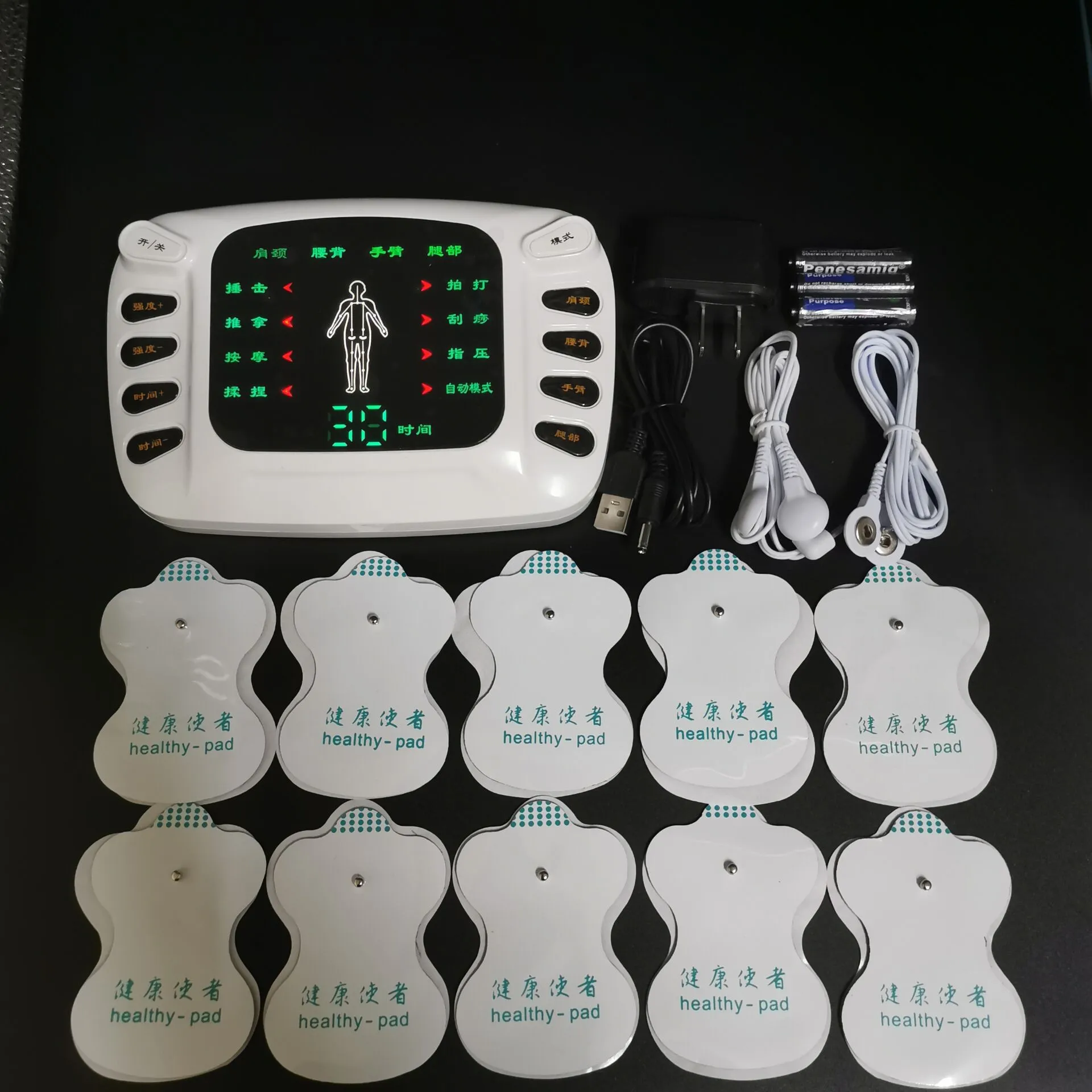 A: Upgraded dual-output high-definition color screen 10 pieces of stickers, send acupoint map,