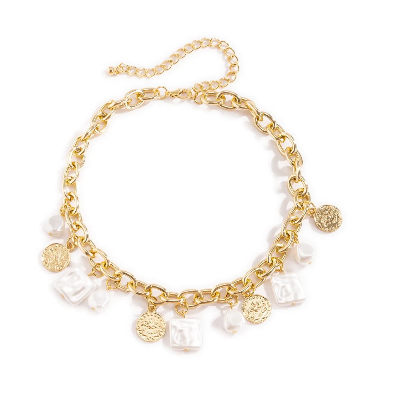 Imitation Pearl Coin Clavicle Chain Women's Retro Multi-cross Necklace