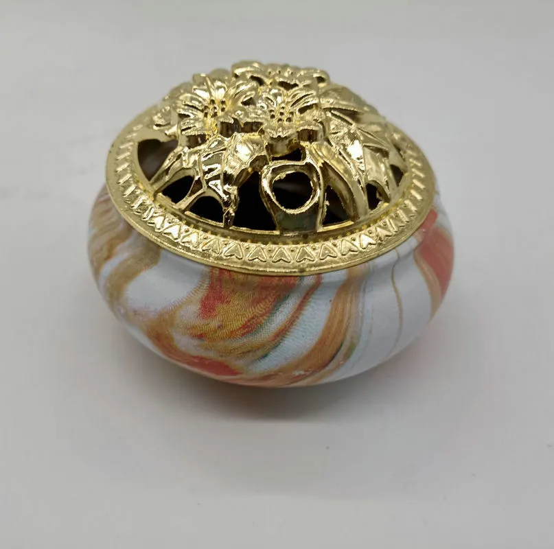 Introducing the Imitation Stone Grain Incense Burner Plate, a beautifully crafted piece designed to enhance your home’s ambiance while promoting relaxation through aromatherapy. Made with ceramic and topped with a stylish alloy cover, this incense burner plate mimics the beauty of natural stone grain to add both elegance and serenity to any space. Whether you're looking to create a calming atmosphere for meditation, yoga, or simply enjoying the therapeutic benefits of incense, this burner plate is the perfect addition to your home décor.The ceramic stove provides a safe and effective way to burn your favorite incense, while the alloy cover helps control the flow of incense smoke, ensuring a clean and peaceful environment. Designed with an imitation stone grain appearance, this burner plate not only serves as a practical tool but also as an aesthetic decoration for your living room, bedroom, or office.