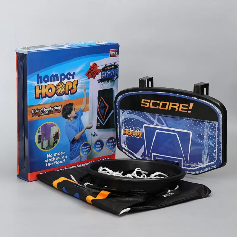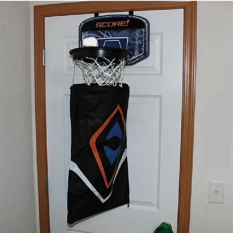 It is a 2-in-1 door basketball basket with a removable laundry bag
