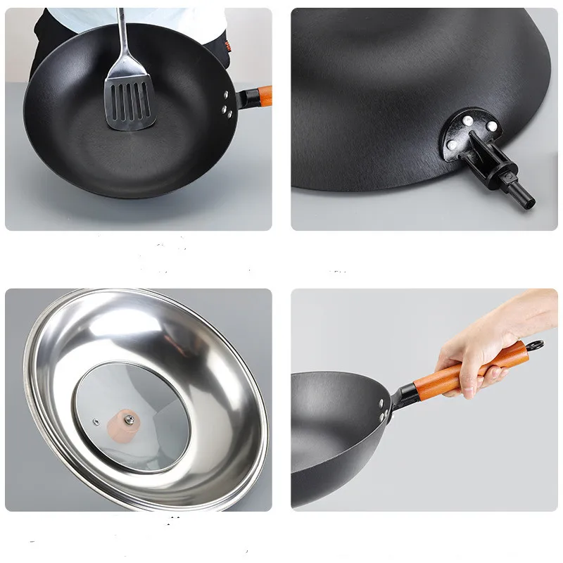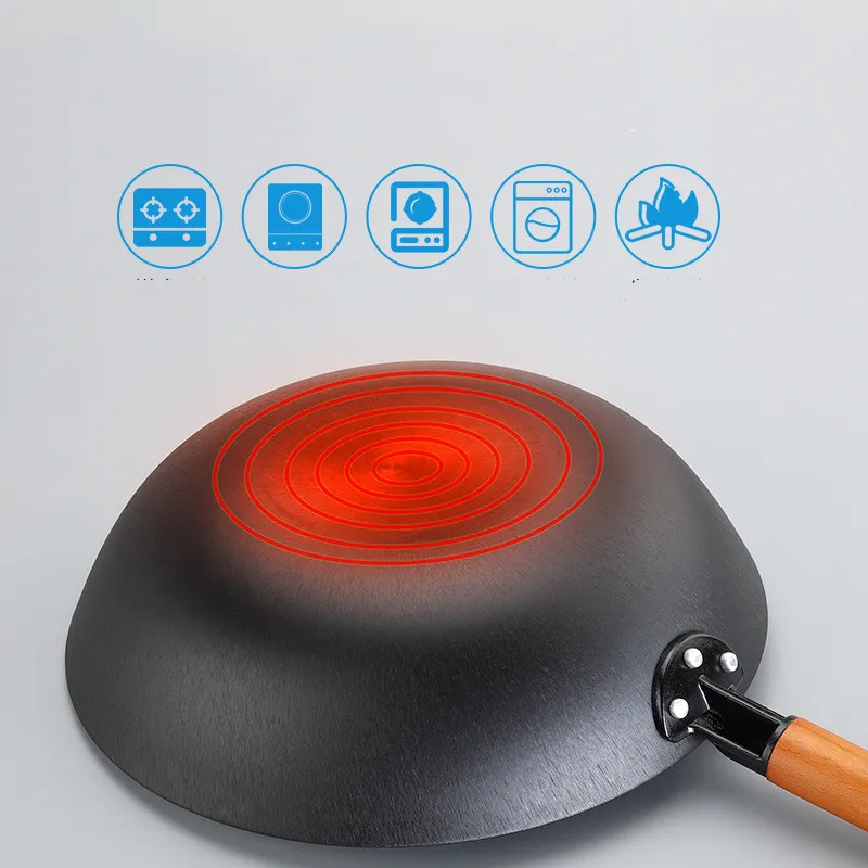 Options include natural seasoned carbon steel woks or non-stick coatings, providing flexibility based on your cooking style and maintenance preference.