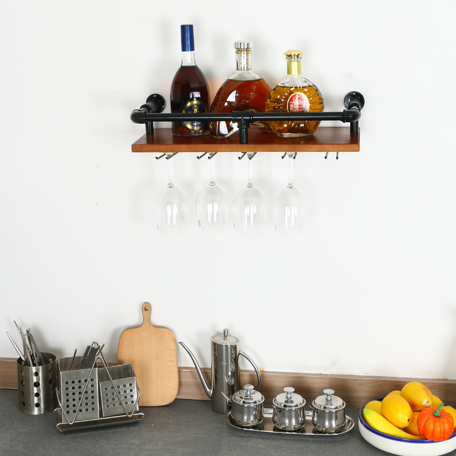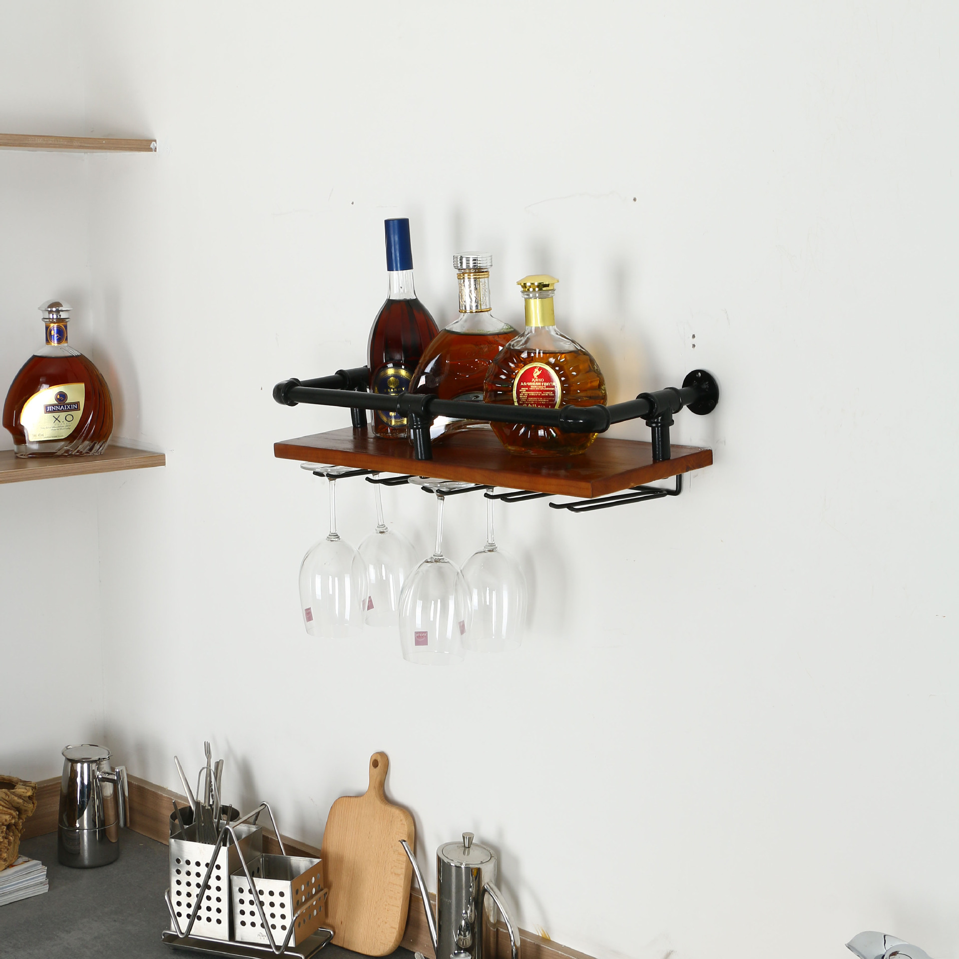 Industrial Bar Hanging Wall Mounted Wine Rack