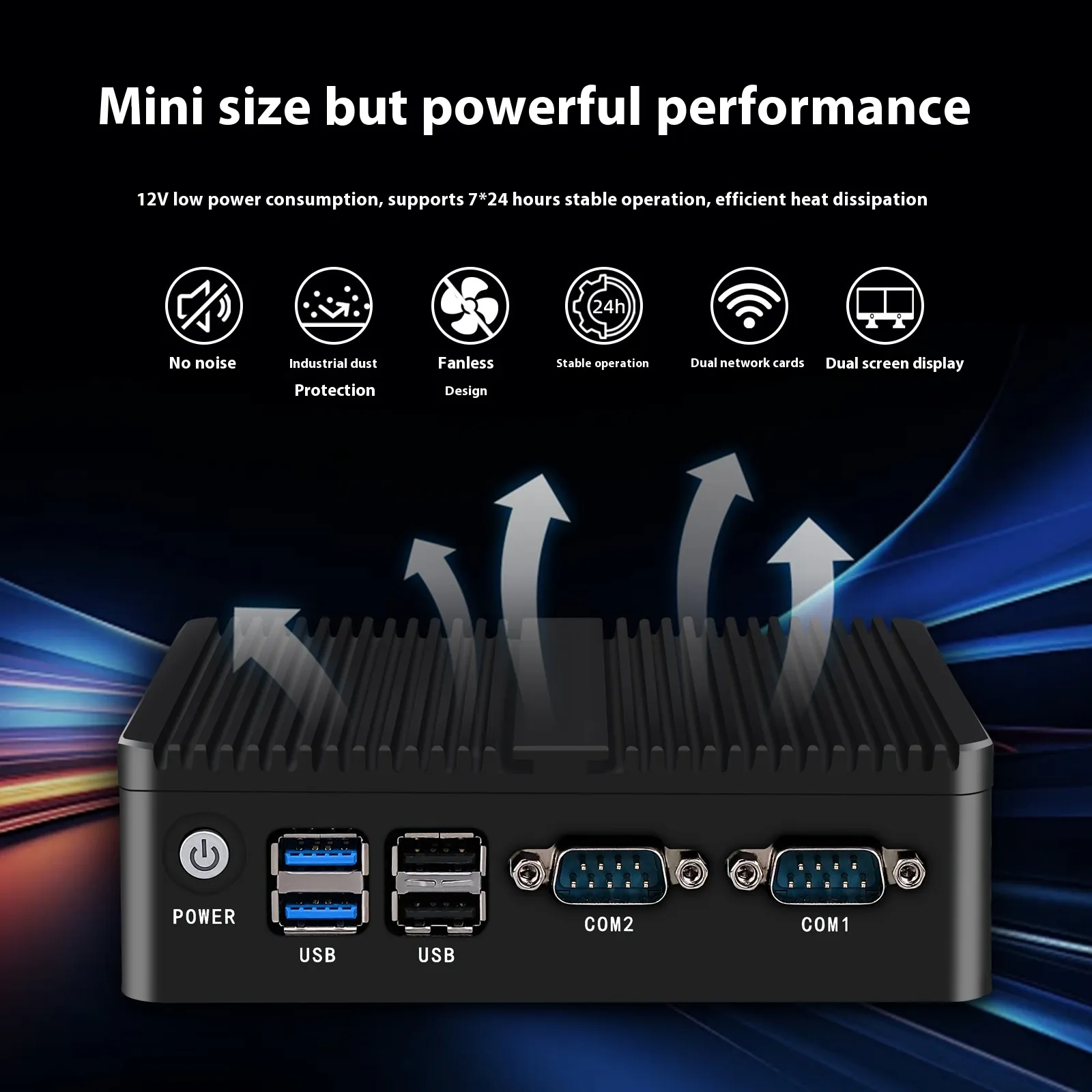 Upgrade your industrial computing with the Industrial Control Quad-Core Dual-Network Embedded Fanless Mini-Host – efficient, reliable, and silent.