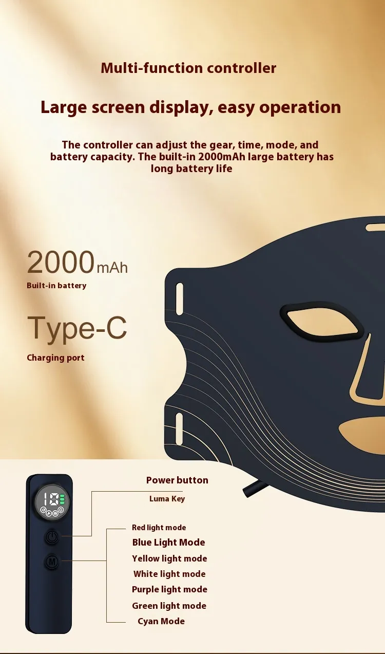This beauty mask harnesses the power of photon therapy and LED lights to enhance your skincare routine. By emitting light waves at different wavelengths, each color penetrates your skin at varying depths, targeting specific skin issues. Whether you're aiming for skin rejuvenation, acne treatment, or improving your complexion, the mask can be tailored to suit your needs. Use it regularly to experience visible improvements in your skin's health and appearance.