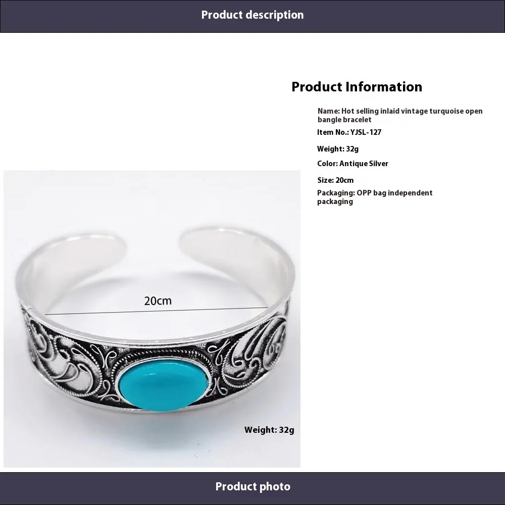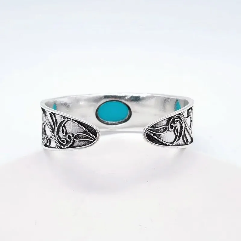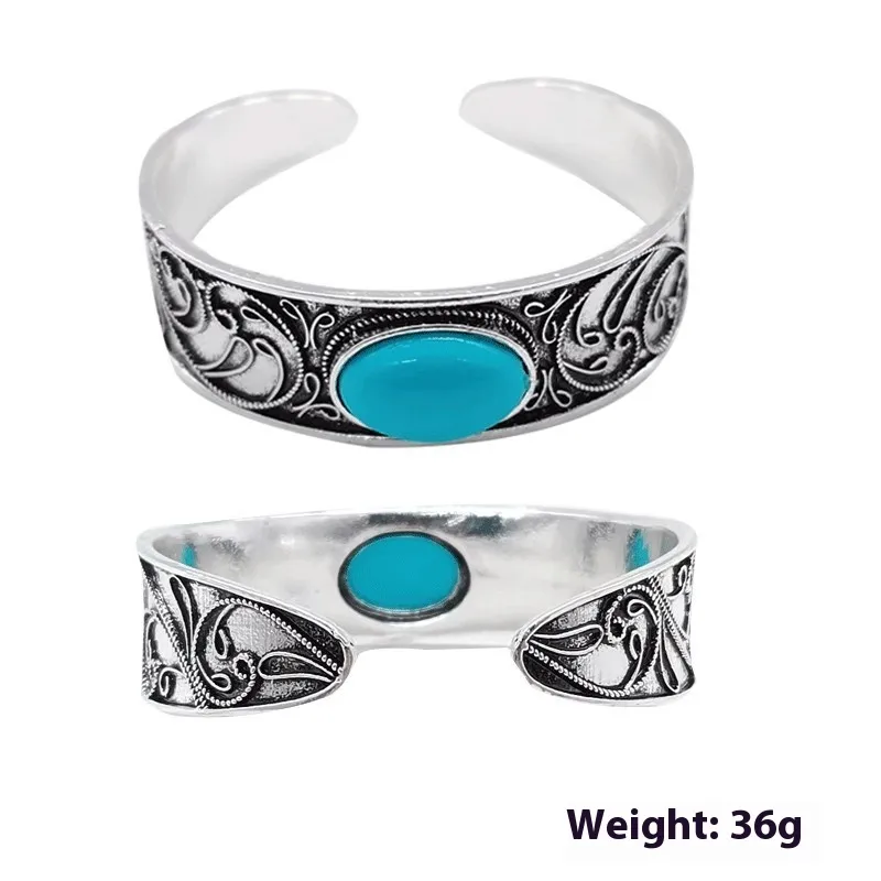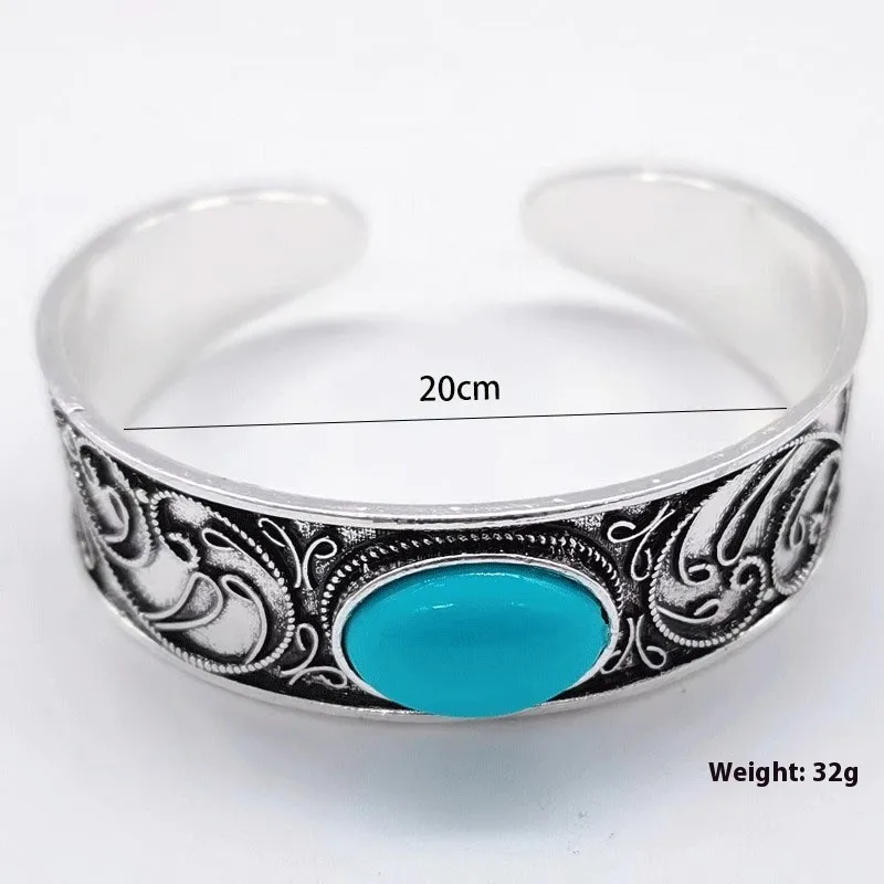 Inlaid Retro Turquoise Open-ended Bracelet