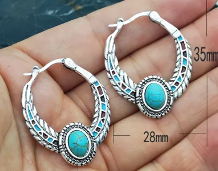 Add a bold, nature-inspired touch to your jewelry collection with our Inlaid Turquoise Eagle Feather Earrings. These unique earrings combine the symbolic beauty of eagle feathers with the vibrant inlaid turquoise, creating a stunning fusion of boho charm and elegance. Perfect for fashion-forward individuals who appreciate fine craftsmanship and distinctive design, these earrings are a standout accessory for any occasion.