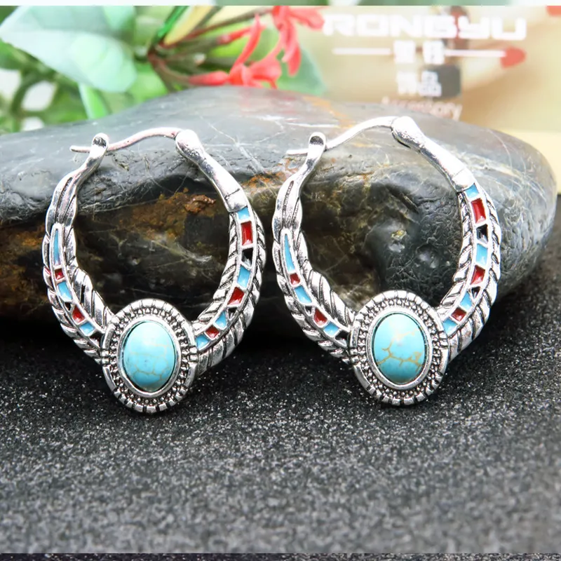 Inlaid Turquoise Eagle Feather Earrings: Nature-Inspired Elegance and Bold Style