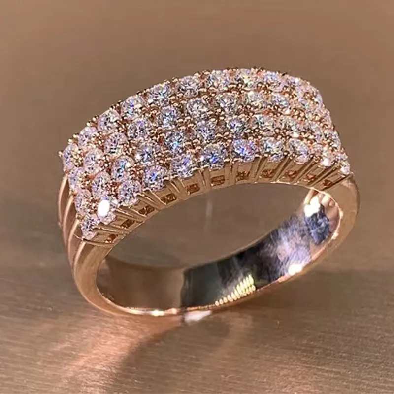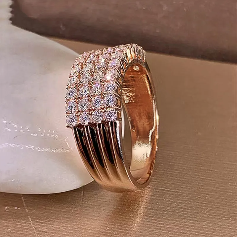 Inlaid Zircon Female Shiny Ring Geometry
