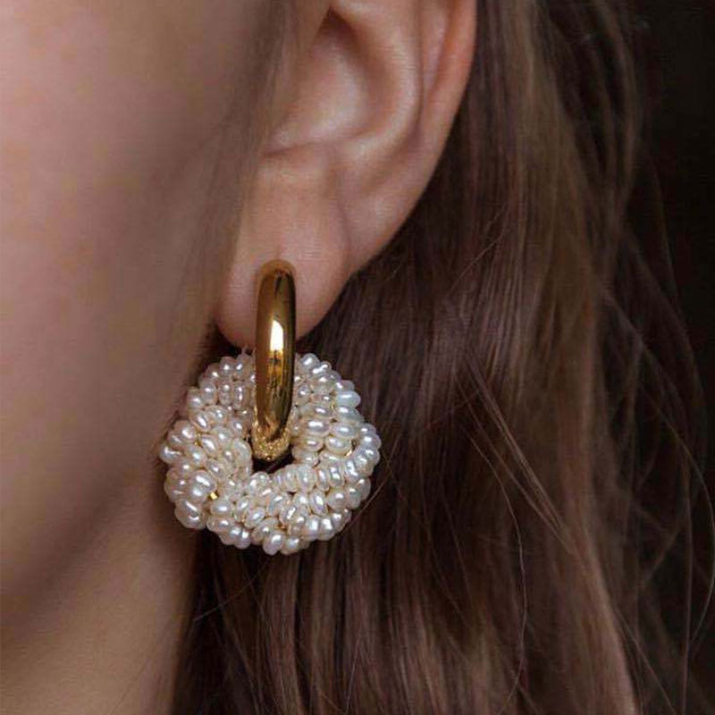 Ins Fashion Trend Simple Lady Hand-woven Pearl Earrings
