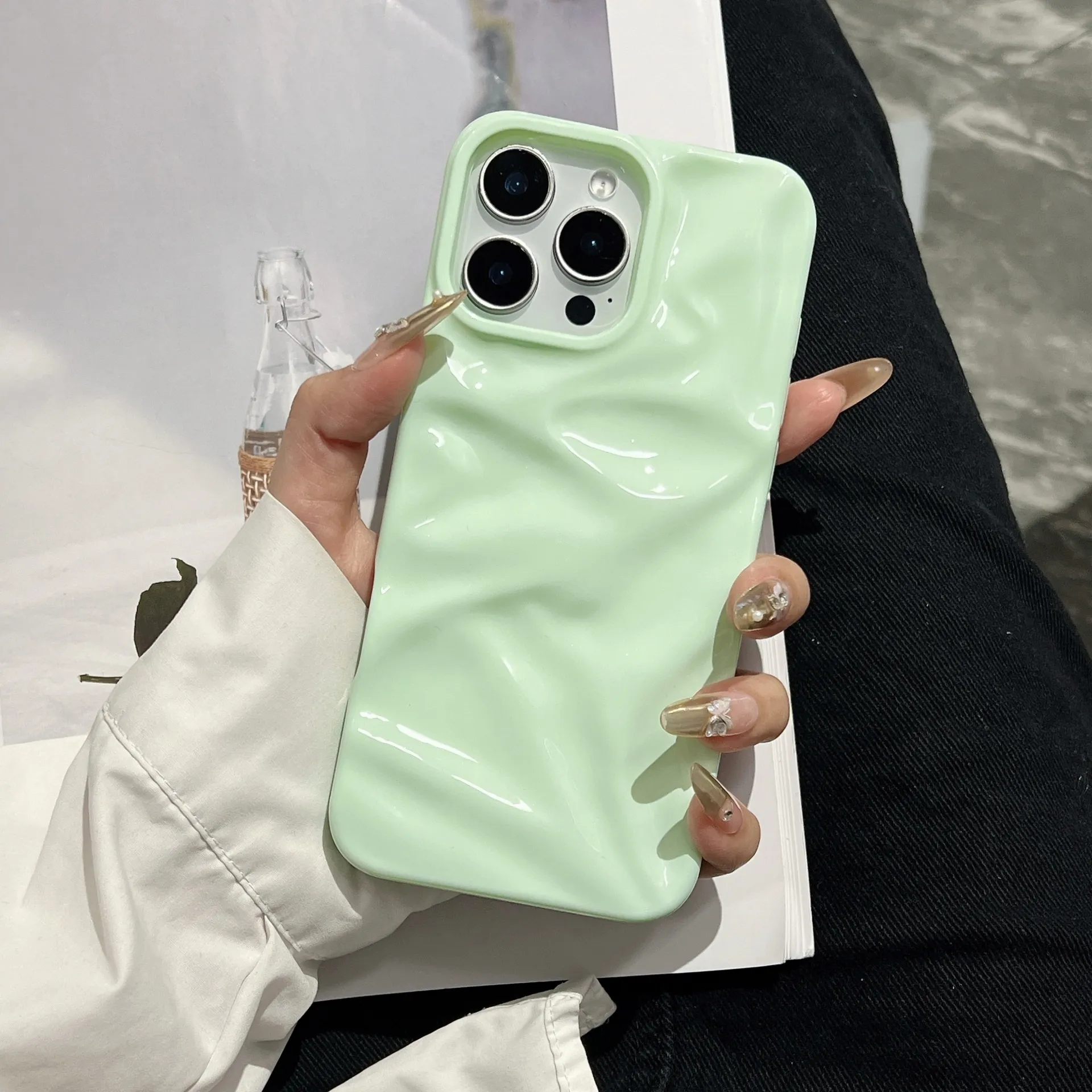 Ins Style Three-dimensional Pleated Pattern Macaron Color Series Phone Case