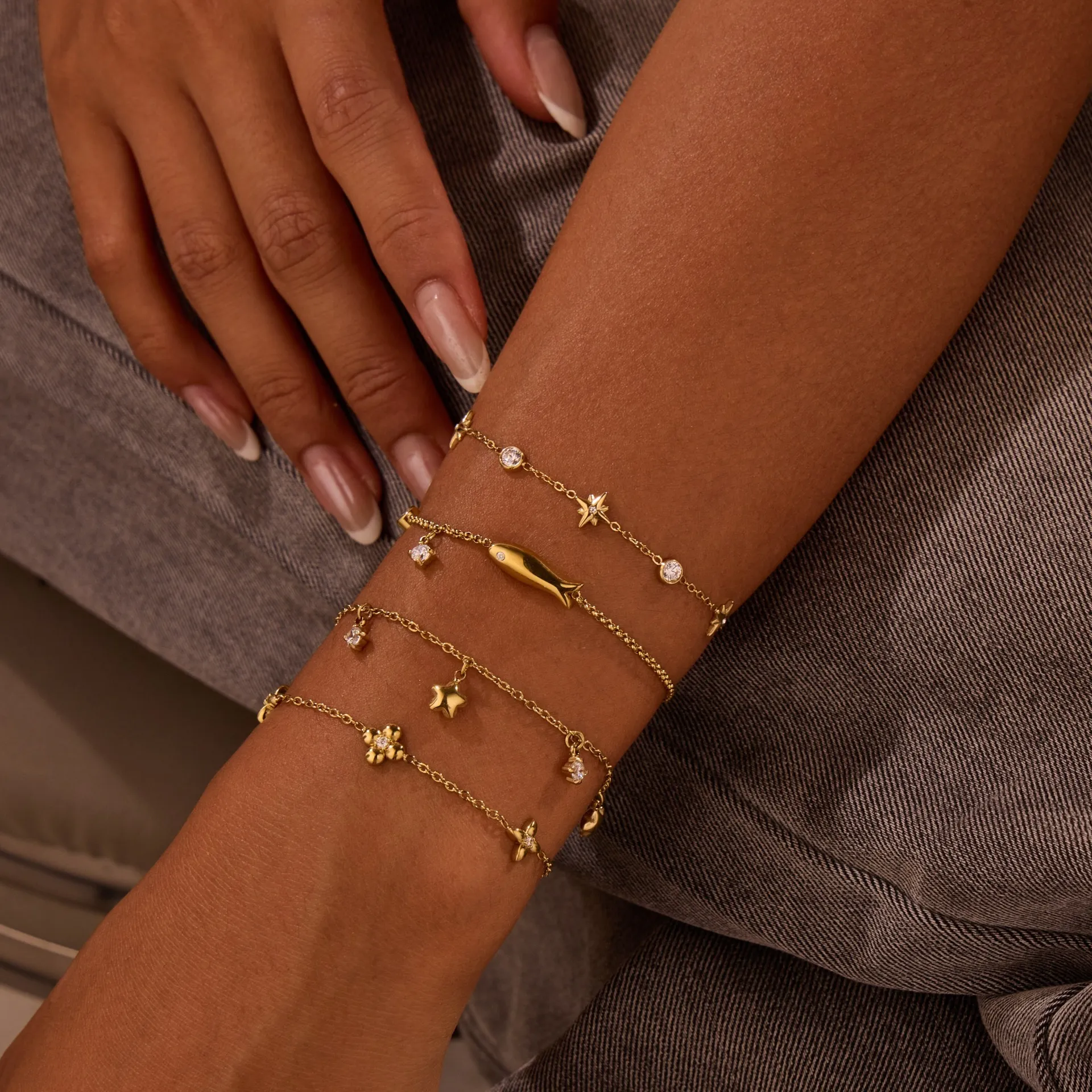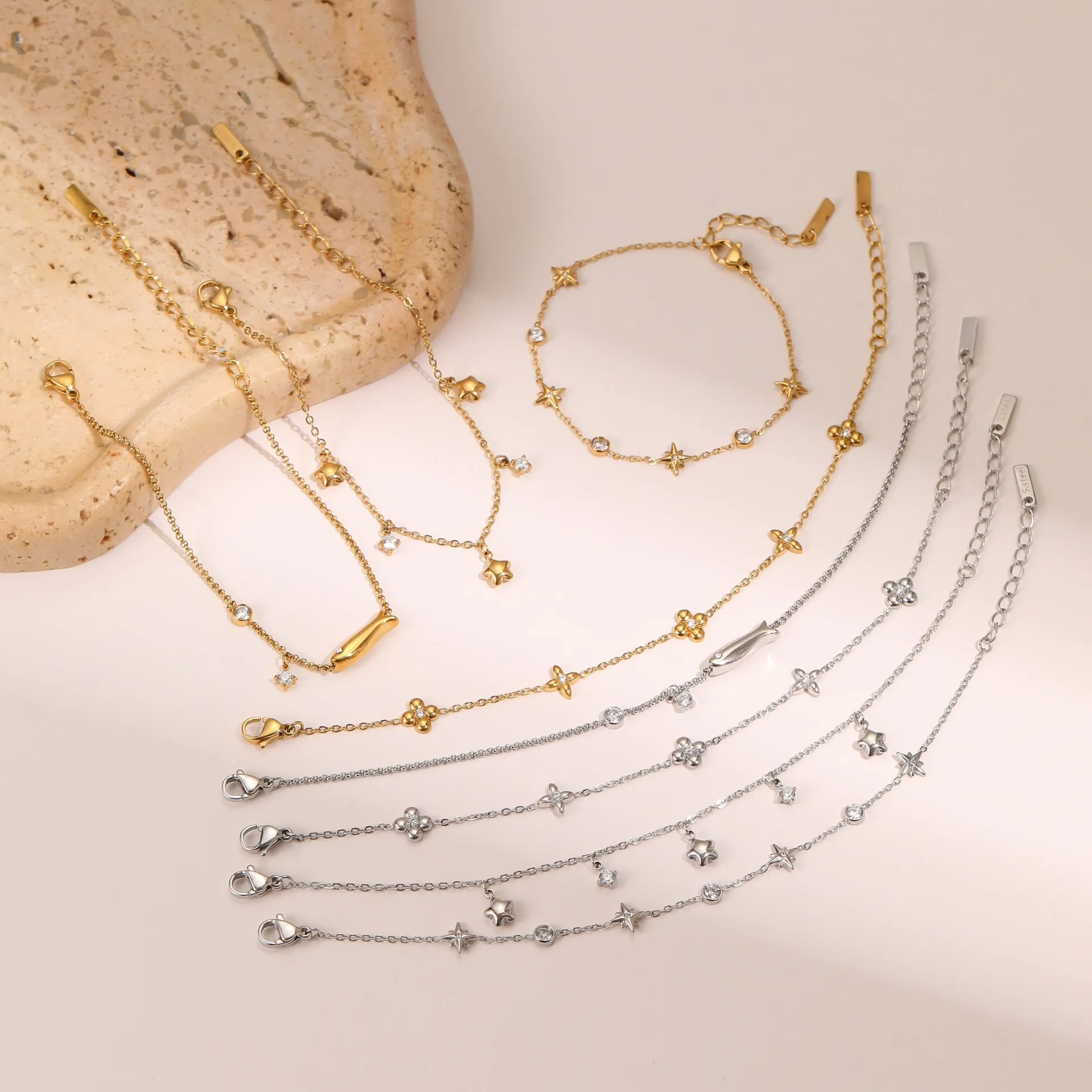 Ins Titanium Steel Bracelet – 18K Gold Plating with Zircon Star Pendant