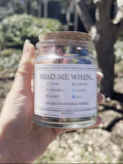 - Inspirational Scriptures-Read Me When Bible Verses Jar:Our Color Coded Bible Verses in a jar contains 92 carefully selected Bible verses covering a wide range of emotions and feelings. Whether you are seeking encouragement, inspiration, or comfort, simply pull a folded card from the glass jar and immerse yourself in the wise words of God and Jesus. Let these verses guide you