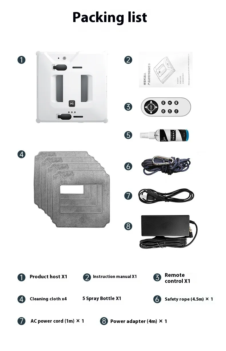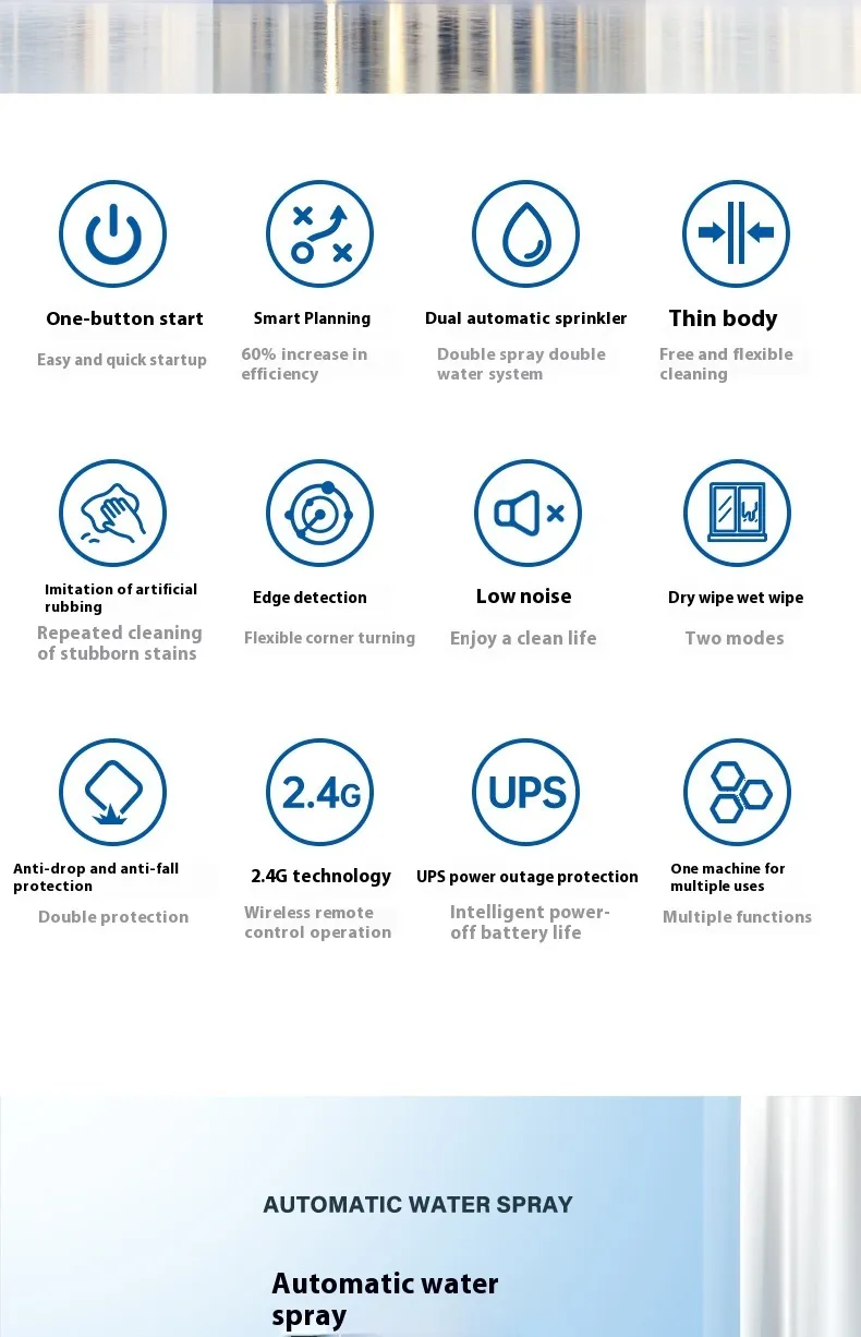 - Anti-Fall Safety System: Ensures the robot stays safe and secure, even on high or slippery windows.