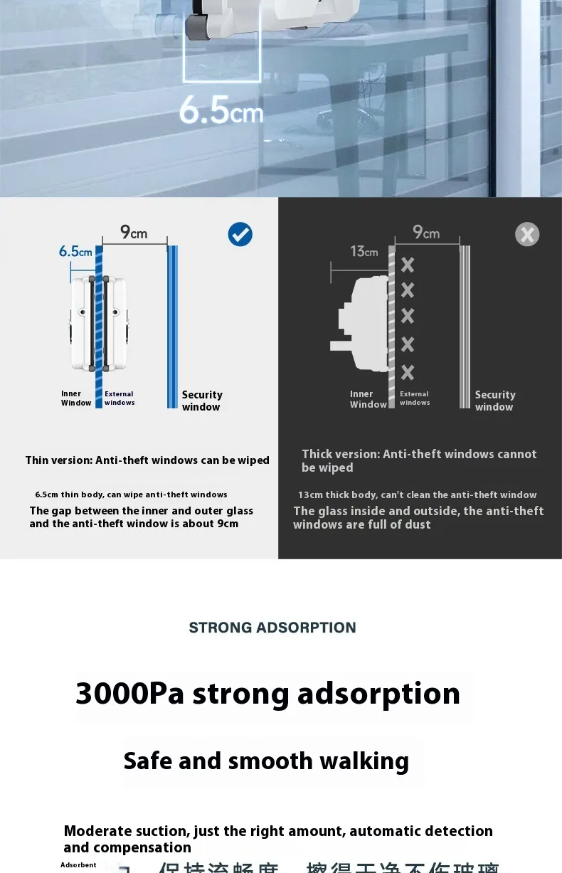 Advanced Suction Technology: Powerful suction ensures that the robot stays securely attached to the window while cleaning