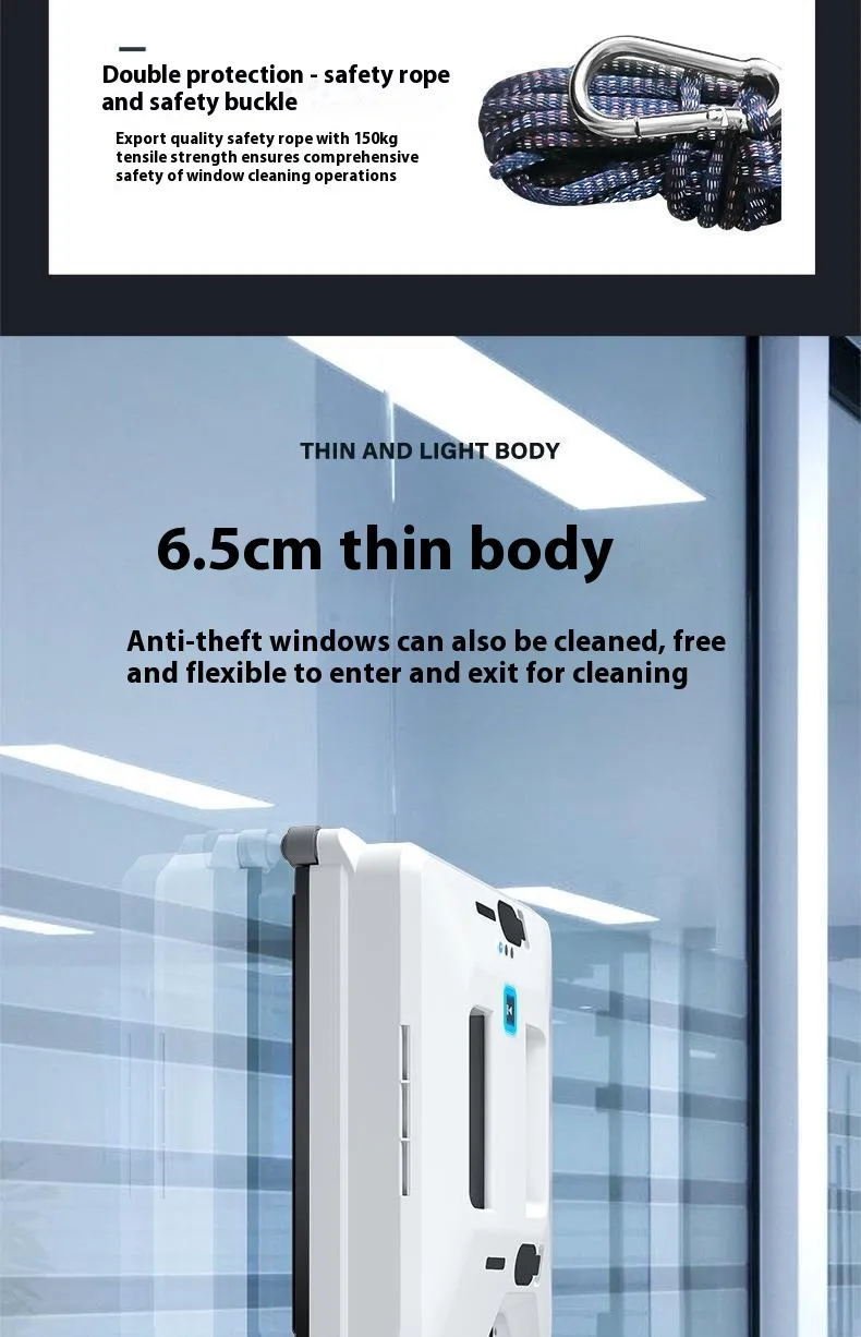 The Intelligent Small Window Cleaner Robot offers a smart, efficient, and safe way to keep your windows spotless without the hassle of manual cleaning. Its advanced suction technology, intelligent navigation, and safety features make it the ideal choice for anyone looking to save time and effort on window cleaning. Whether you're looking for a convenient solution for your home or a high-performance cleaning device for a commercial space, this robot provides the perfect balance of functionality, efficiency, and safety.
