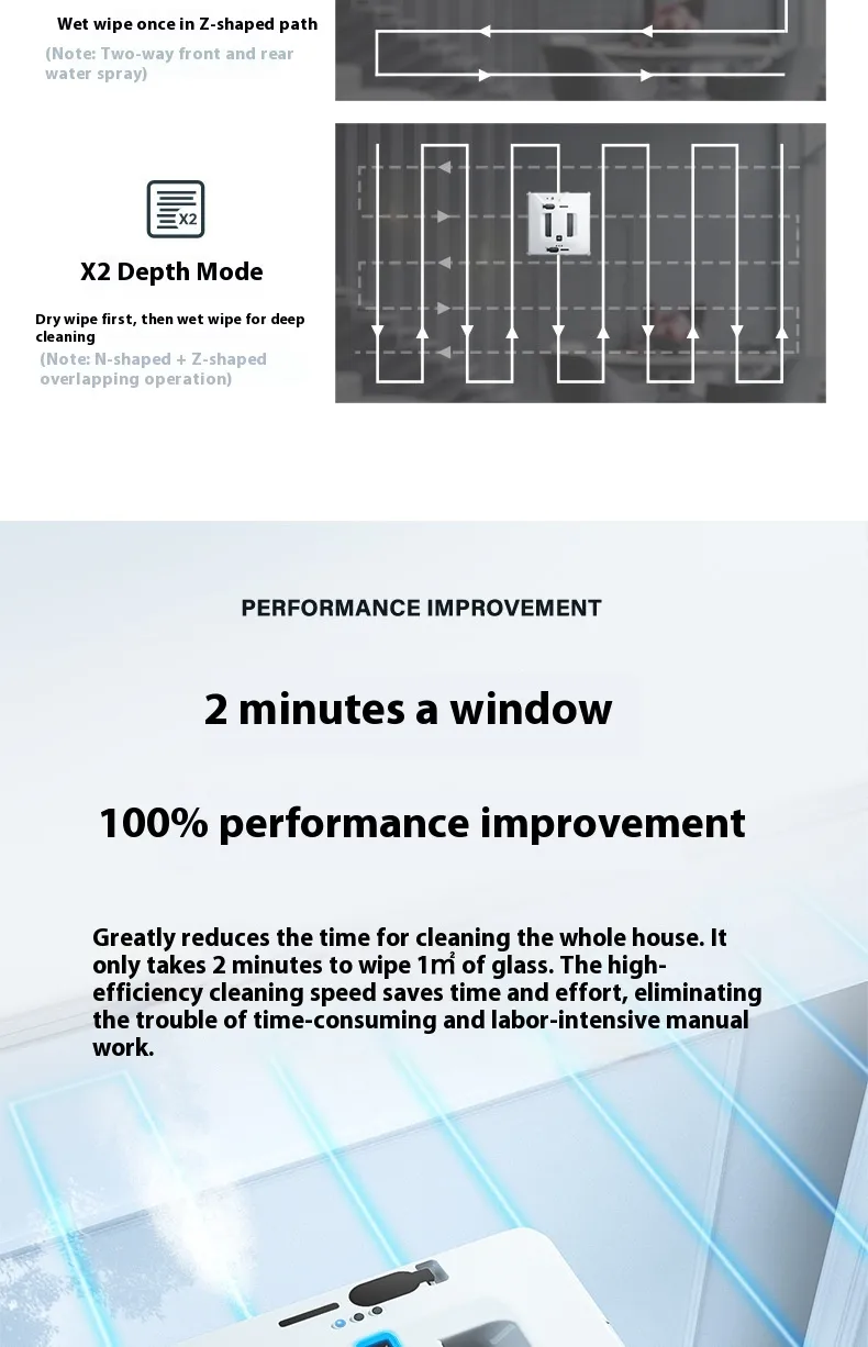 Thorough Cleaning: The intelligent navigation and multiple cleaning modes ensure that your windows are cleaned thoroughly,
