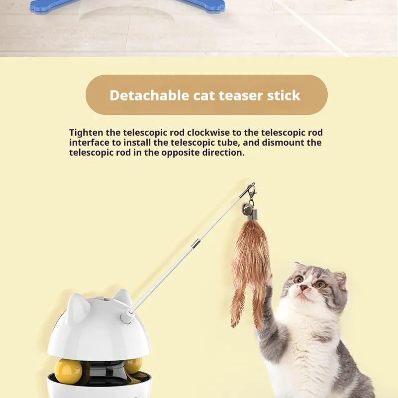 - Fun Stick Design: The Funny Stick attachment features a soft, flexible rope that sways and spins with motion, encouraging your cat to engage in playful batting and chasing. This feature is designed to mimic the movement of a wand toy, but with automated interaction, making it perfect for independent play.