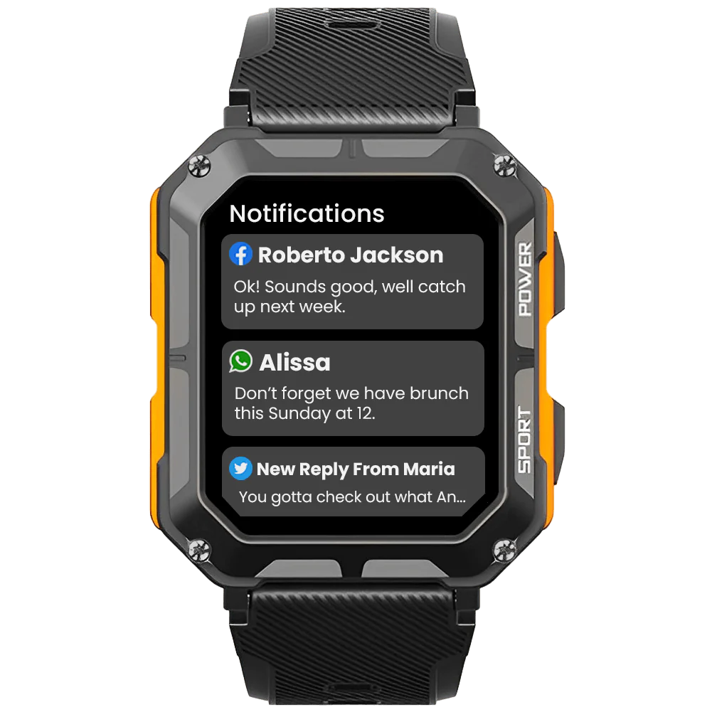 Stay connected without interruptions with the Indestructible Smartwatch. Make and receive calls with ease while you work, without the need to pull out your phone.