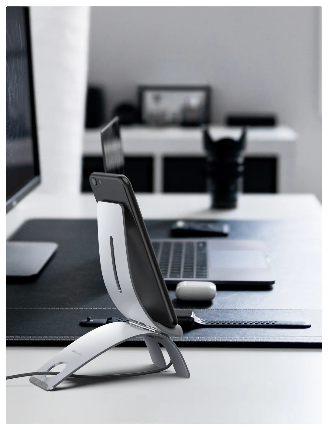 Designed with a modern and minimalist aesthetic, the IQUNIX Mobile Phone Holder adds a stylish touch to any workspace or home. Its sleek lines and clean design make it a perfect match for contemporary décor, whether on your desk, nightstand, or countertop. The holder not only serves a functional purpose but also enhances the overall look of your space.