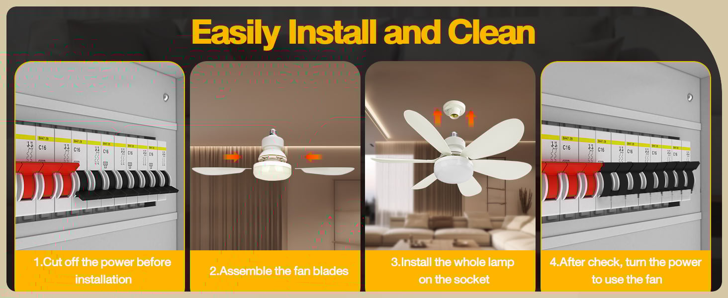 Easy Installation: Designed to fit into a standard E27 socket, this ceiling fan light is incredibly easy to install. Simply