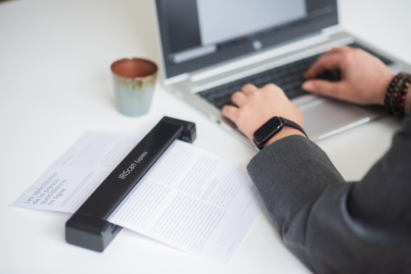 The IRIScan Express 4 is a portable USB sheetfed scanner. So you simply need to insert the page you want to scan into the device, and it will come out scanned in a few seconds.