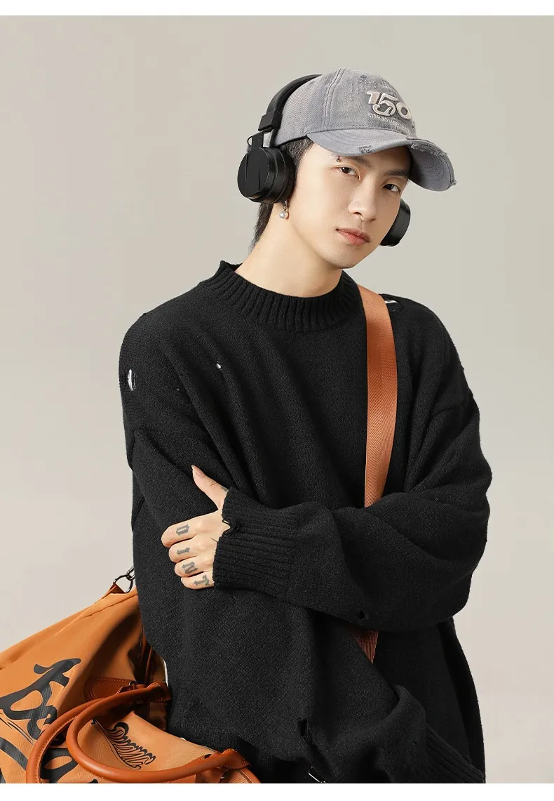 The stylish ripped accents add an edgy vibe to your outfit, making this sweater a perfect choice for those who love to stand out. It effortlessly combines a casual look with a touch of sophistication.