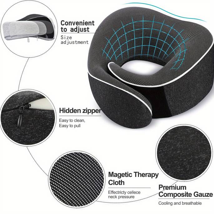 The ergonomic contour design offers targeted neck support, reducing discomfort and strain, making it ideal for long flights, car rides, or