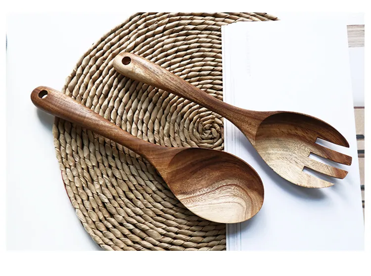 Japanese Acacia Wood Cooking Spoon And Fork Set