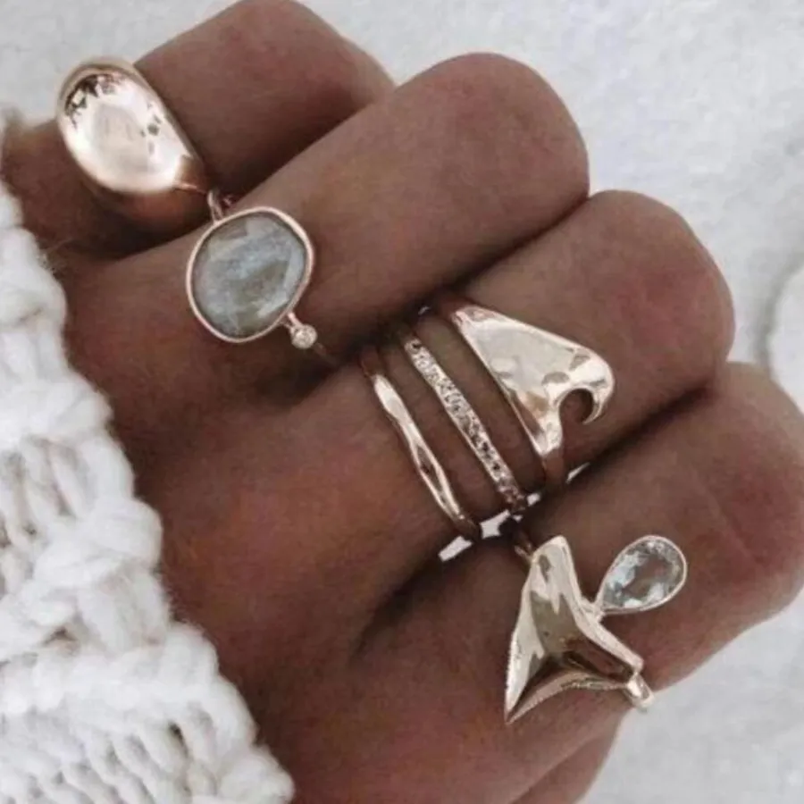 - Six unique designs: Each ring in the set has a distinct design, offering a blend of geometric patterns, delicate lines, and modern shapes.