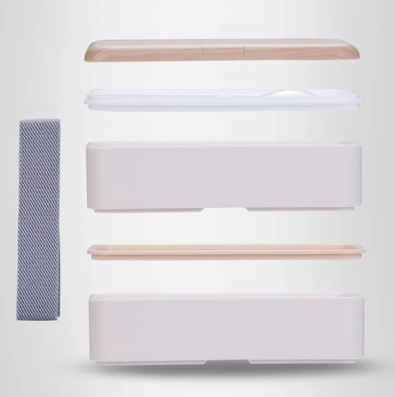 Double layered lunch box portable microwave oven heating male and female student tableware