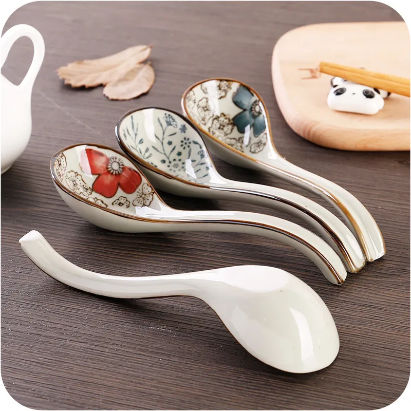 Japanese Hefeng Underglaze Color Hook Spoon Ceramic Long Handle Spoon Congee Soup Spoon Spoon Spoon Spoon Spoon Stirring Spoon Spoon Spoon