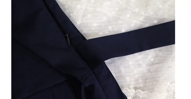 The standout feature of the Japanese Navy Neck Embroidered Dark Blue Preppy Dress is the exquisite embroidery detailing around the neckline. The intricate design is inspired by Japanese artistry, featuring delicate floral patterns that add a refined and artistic touch to the dress. This embroidery not only elevates the overall look of the dress but also imbues it with a sense of tradition and grace, blending perfectly with the modern preppy style.