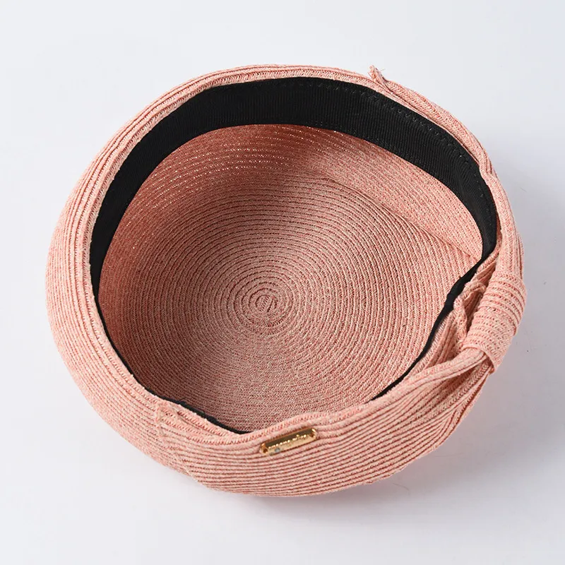 This straw beret features a clean, structured design enhanced by an elegant bow detail that adds a subtle yet stylish touch. The fine woven straw texture reflects superior craftsmanship, offering a lightweight and breathable accessory ideal for summer. Its round beret shape provides a modern twist on traditional straw hats, perfect for women who love effortless, minimalist elegance.