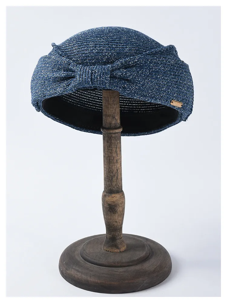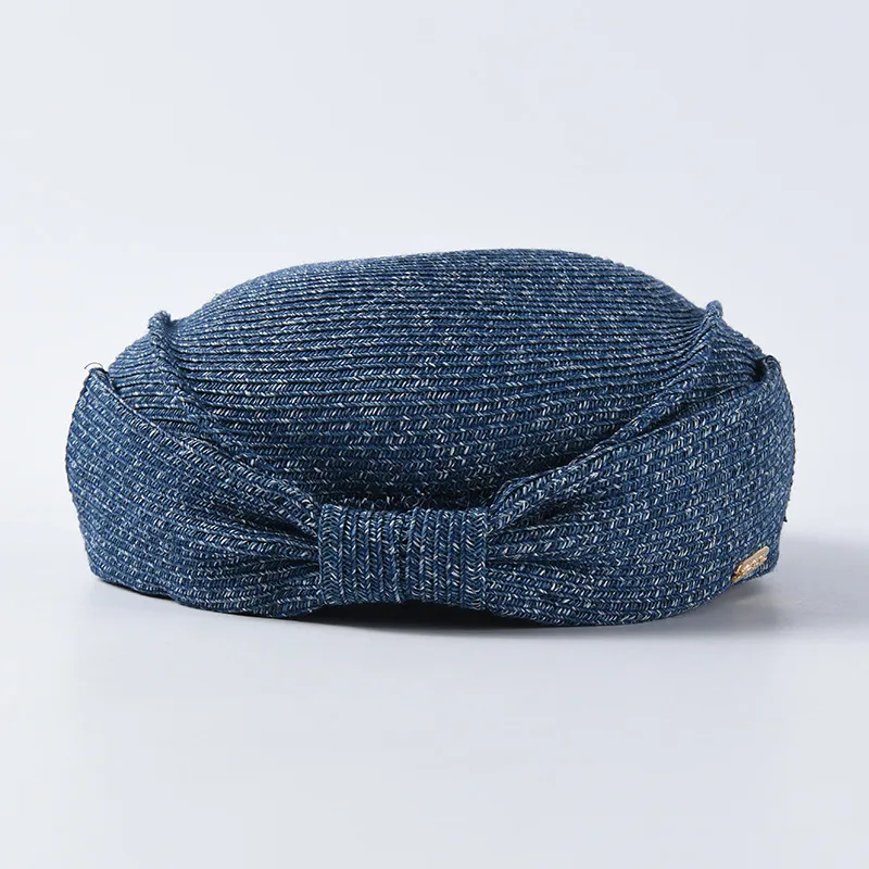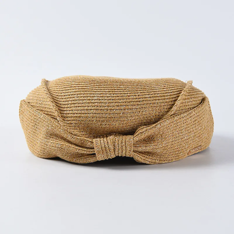 Japanese Straw Beret Summer Hat: Elegant Style with a Feminine Bow