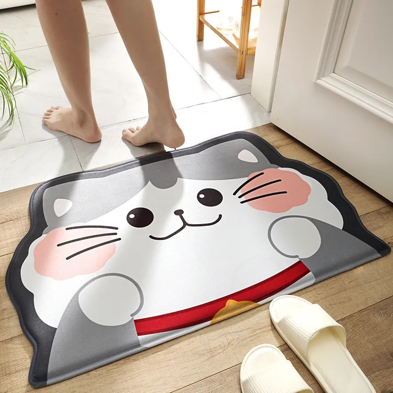 Sized perfectly at 50*60cm, this bath mat fits most bathroom spaces, offering just the right amount of coverage while still being compact enough for easy use and storage. The non-slip backing ensures stability, preventing slips and falls, even when wet. Whether you're looking to brighten up your bathroom with a unique design or need a safe and comfortable mat for everyday use, this cartoon cat animal bath mat is a must-have.