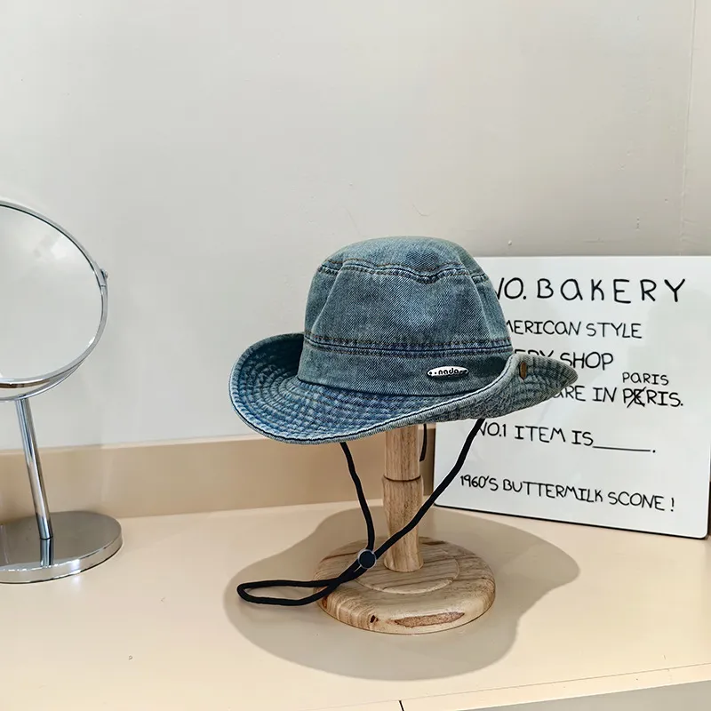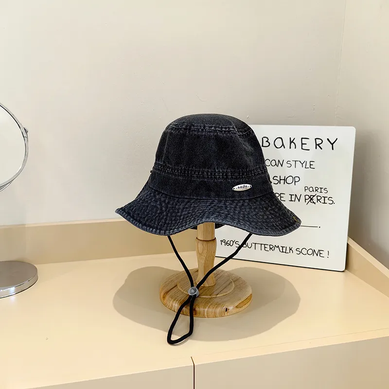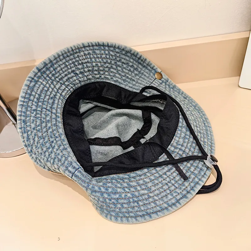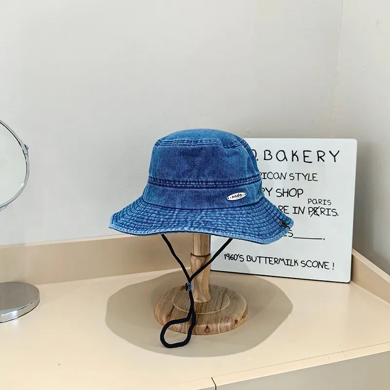 Japanese Style New Denim Small Iron Mark Bucket Hat Makes Face Look Smaller