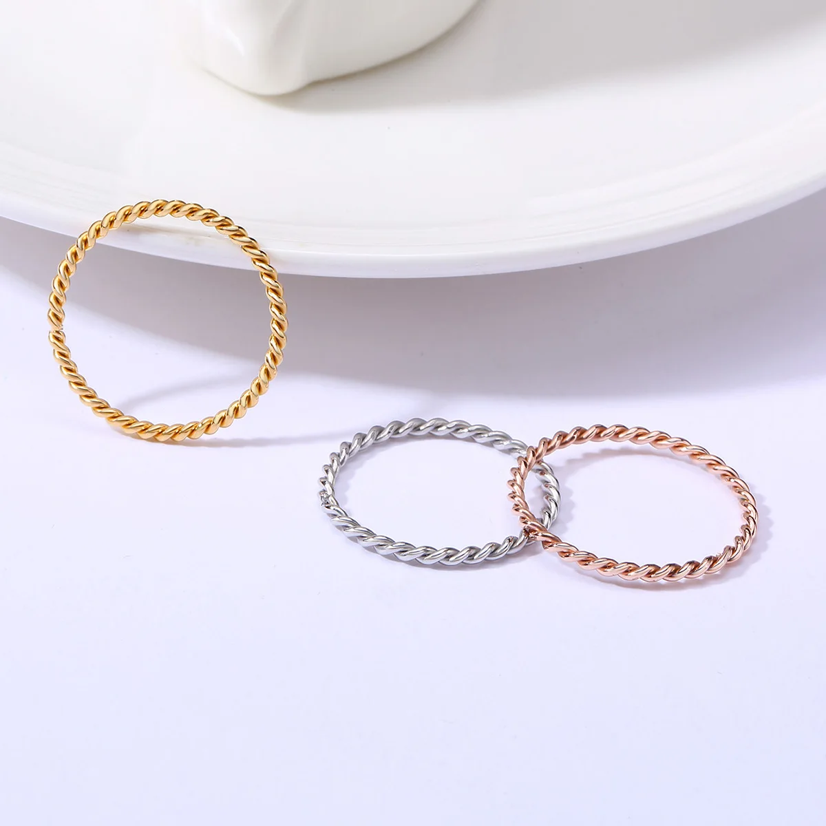 JHSL 1.5mm Small Mini Silver Rose Gold Color Stainless Steel Twisted Women Rings