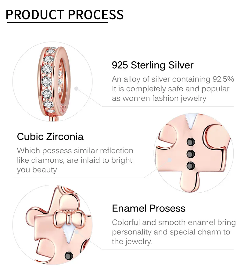 Jigsaw Pendant Rose Gold Plated Valentine's Day Fashion S925 Pure Silver Diy Beads