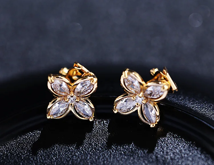 The earrings are designed in a beautiful flower shape, making them a standout piece in any jewelry collection. The AAA Cubic Zirconia stones are carefully set to mimic the look of real diamonds, offering a dazzling and refined look.