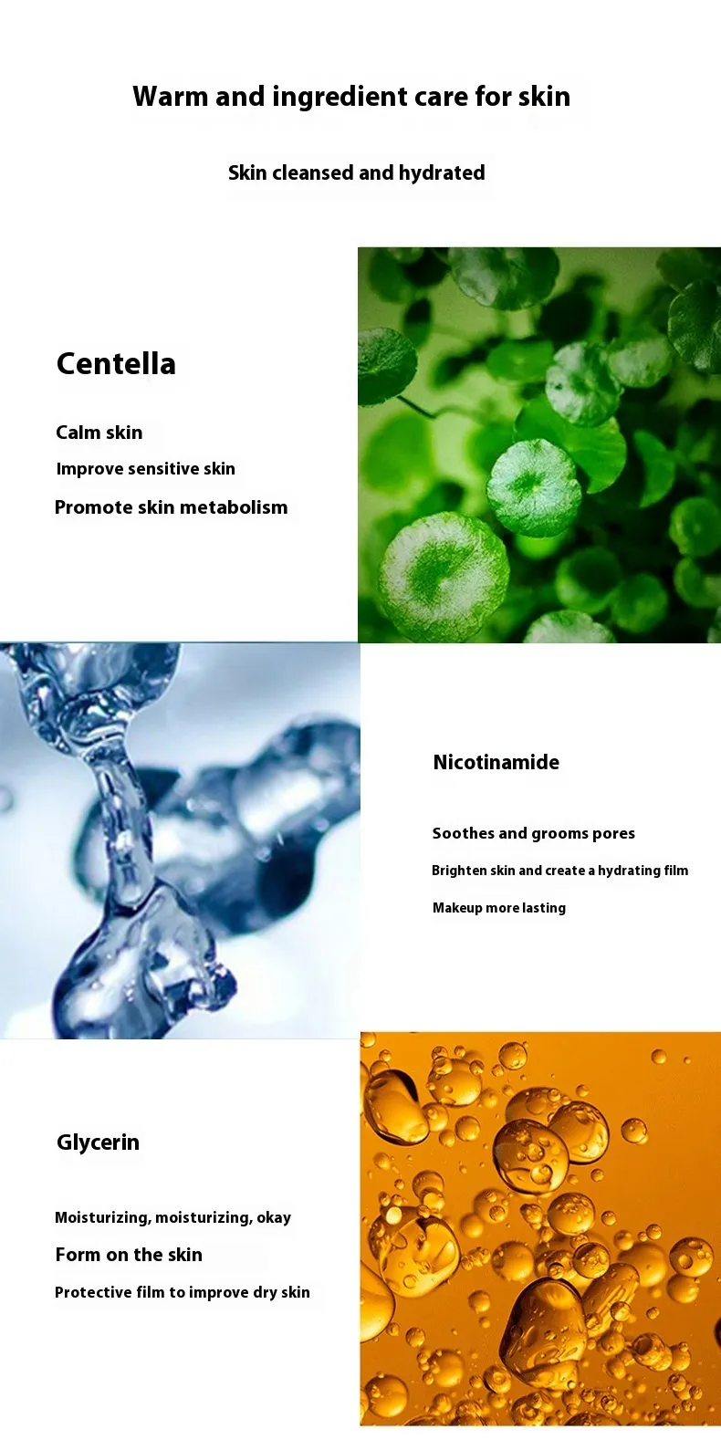 Mild Ingredients: Suitable for sensitive skin, with gentle ingredients that soothe and hydrate without irritation.