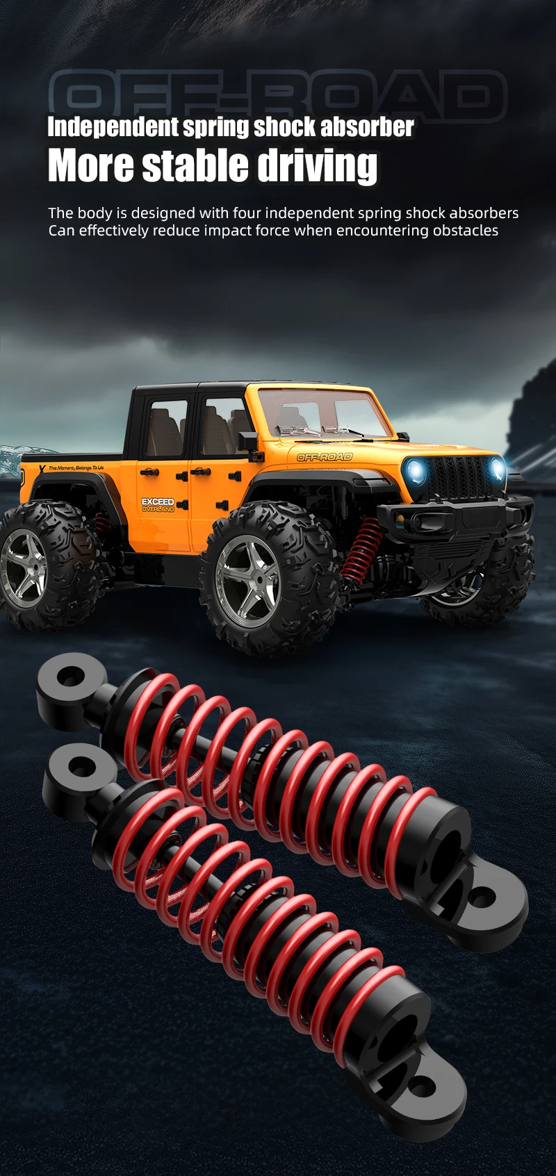 2. The entire vehicle is equipped with a fully proportional standard servo, four-wheel drive system, four-wheel independent suspension