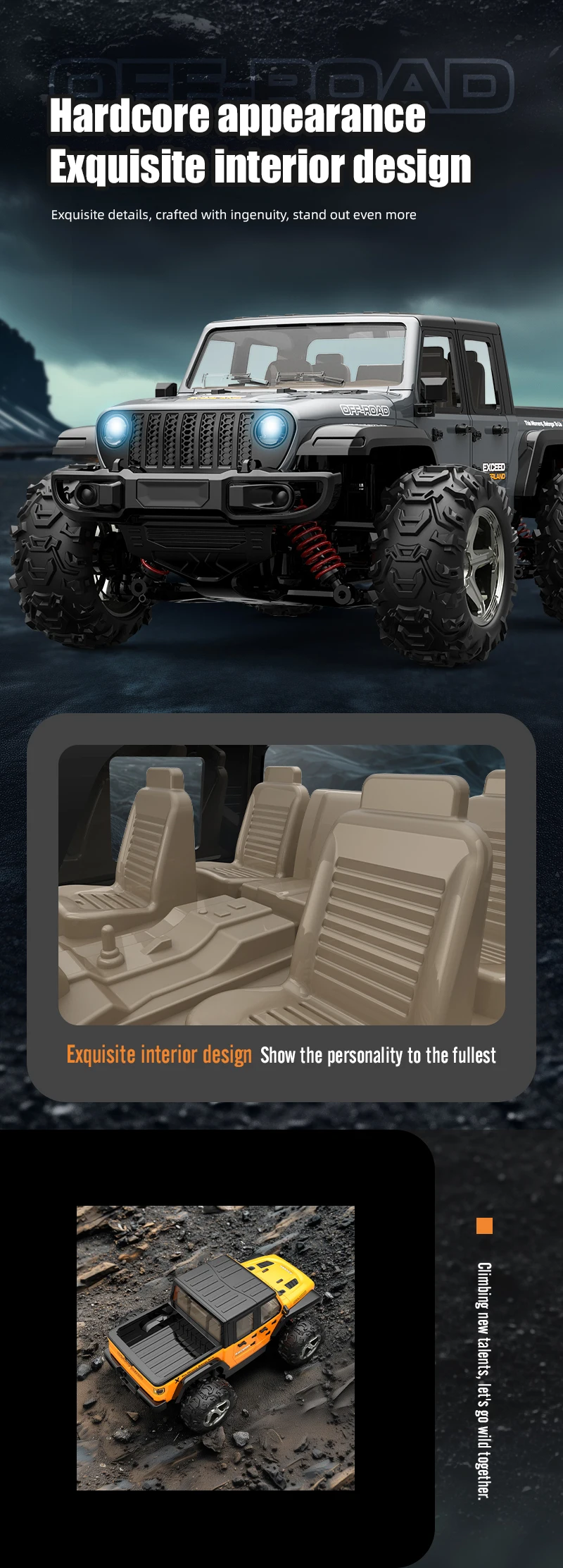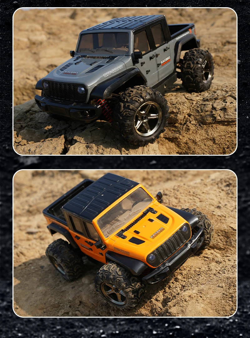 The 1:20 scale of the JJRC C8819 provides a compact yet realistic design, offering a miniature version of a Wrangler pickup truck. The attention to detail in the design, from the wheels to the body, makes this RC car look just like a real off-road vehicle.