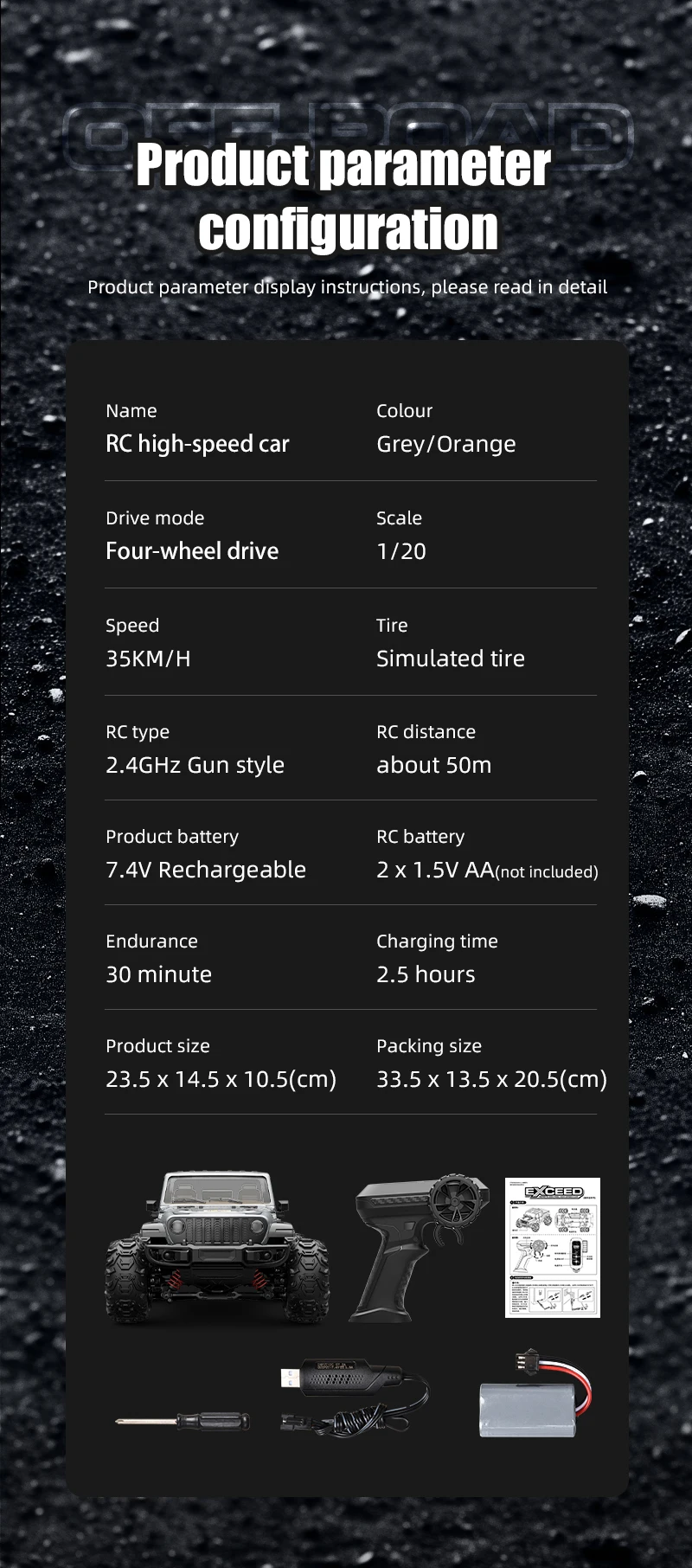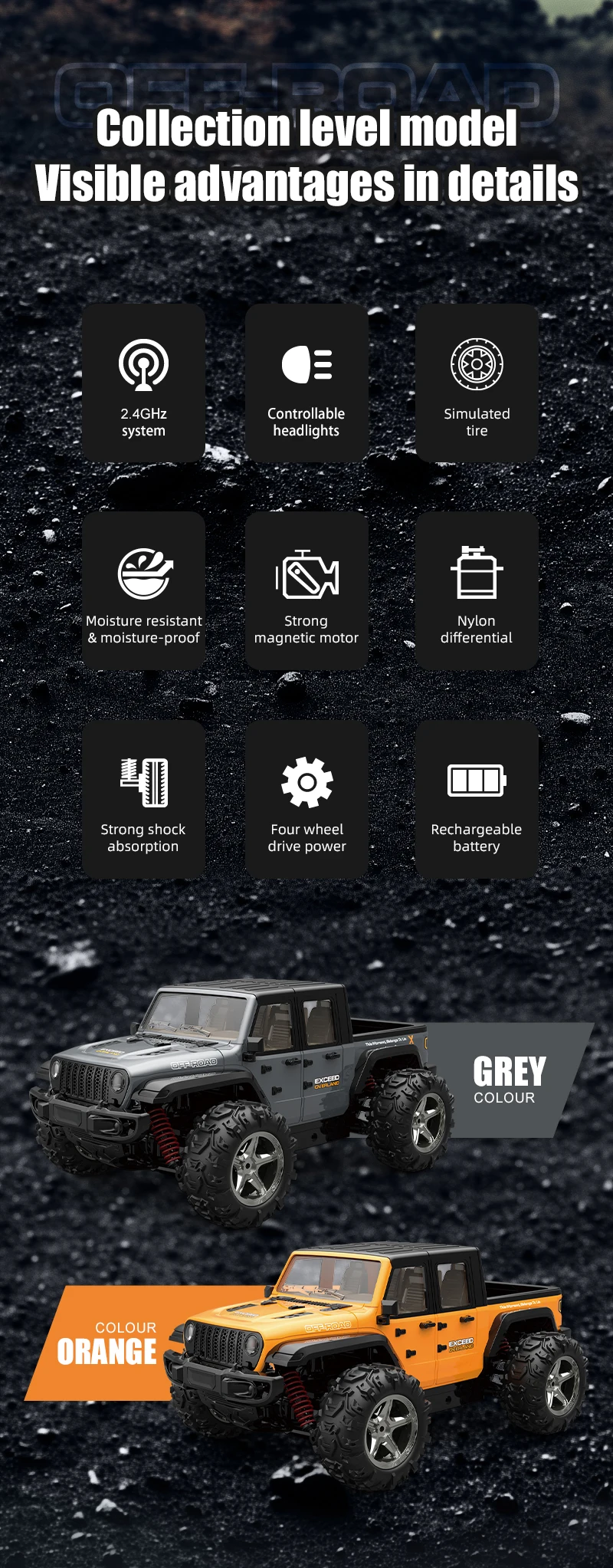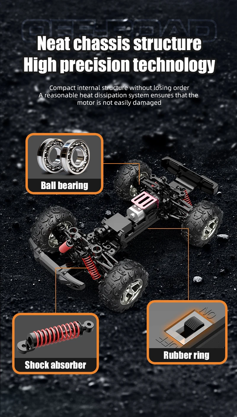 1. The product uses a front and rear differential, full proportional throttle and steering, making the handling performance of high-speed