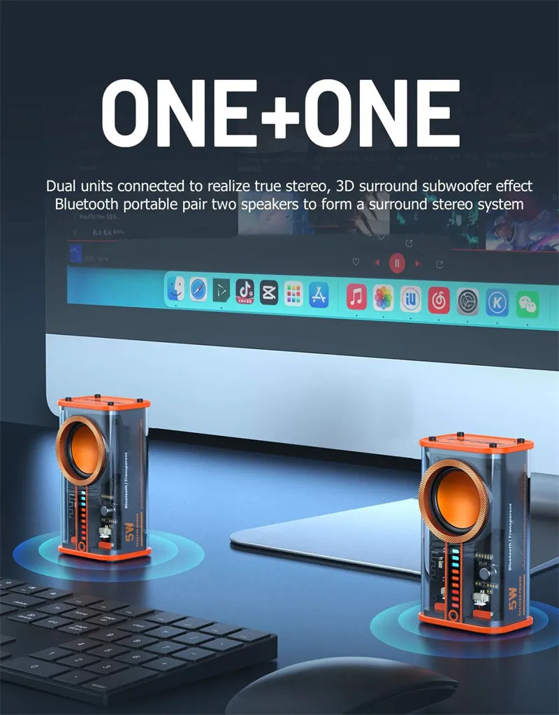 Unleash the future of audio with the K07 Transparent Mecha Wireless Bluetooth Speaker—a cyberpunk-inspired music center designed for those who crave bold aesthetics and powerful sound. Featuring a transparent mecha design, dynamic sound light rhythm, and a built-in subwoofer, this speaker is more than just a gadget; it’s an audio-visual experience.
