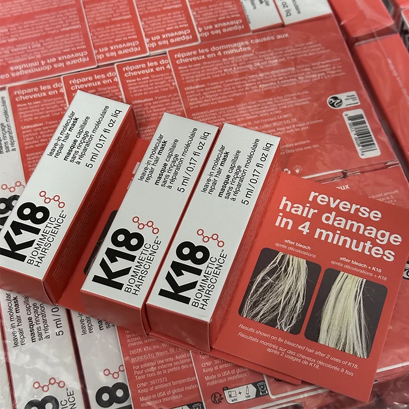 The K18 Leave-In Molecular Repair Hair Mask is a groundbreaking deep conditioning treatment that works to restore and