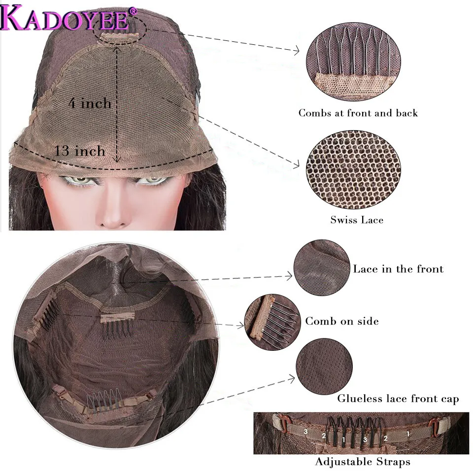 Kadoyee 13x4 Lace Front Wig made from 100% human hair. Preplucked, pre-bleached, natural & soft. Perfect for everyday wear or special